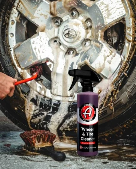 Adams Wheel & Tire Cleaner—designed to make cleaning stubborn tires and caked up wheel contamination a breeze with one chemical. The formulation specifically targets neglected sidewalls and wheel surfaces to breakdown buildup.