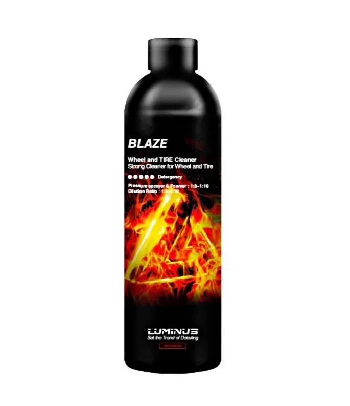 Luminus Blaze - High-Performance Wheel & Tire Cleaner. Blaze is a professional-grade wheel and tire cleaner formulated to tackle the toughest brake dust, road grime, and stubborn dirt. Its powerful yet safe formula ensures effective cleaning.